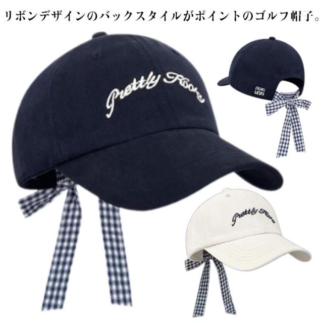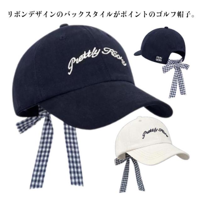 バックリボン リボンキャップ 帽子 バックリボンキャップ レディース ベースボールキャップ オーバーフィット キャップ リボン ガーリー 細め チェック柄 ゴルフ帽子 帽子 フェミニン オトナカワイイ かわいい
