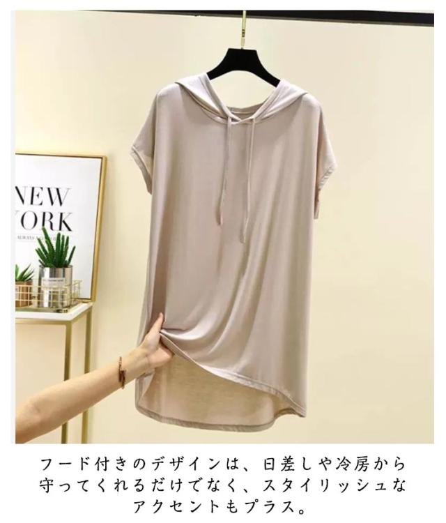夏用パーカー サマーパーカー レディース トップス ビッグパーカー プルオーバー サマーパーカー ゆったり 夏用パーカー 薄手パーカー 半袖パーカー UVカット 半袖 フード付き オーバーサイズ ビッグサイズ ビッグシルエット ルームウェア 無地