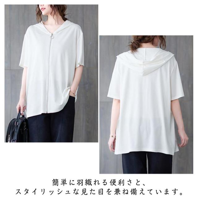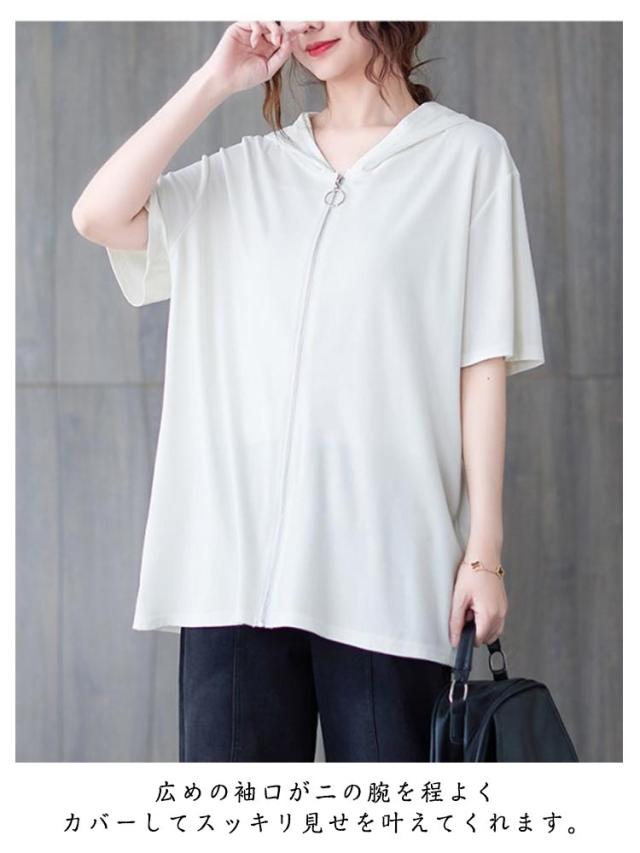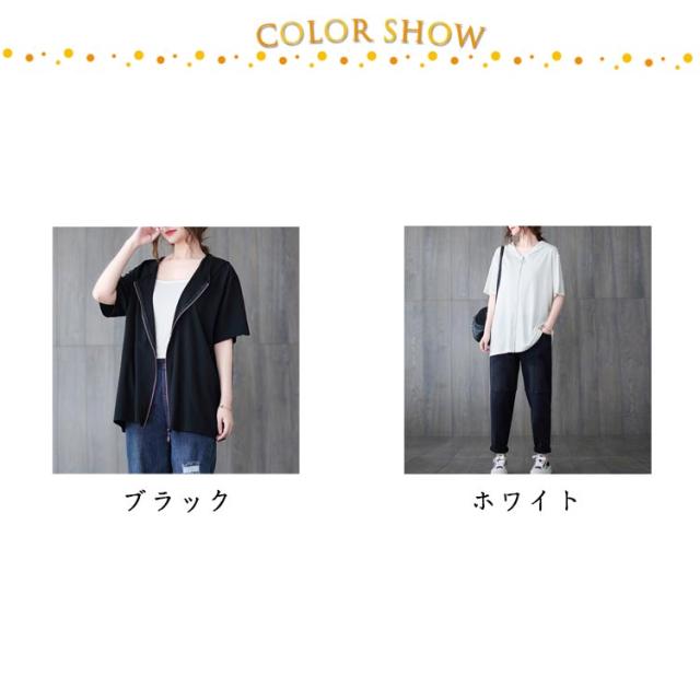 | 着まわしやすいシンプルなデザインの半袖パーカーです。 広めの袖口が二の腕を程よくカバーしてスッキリ見せを叶えてくれます。 春夏にぴったりの軽やかな半袖パーカーは、日常の装いに洗練されたスタイルを加えます。 簡単に羽織れる便利さと、スタイリッシュな見た目を兼ね備えています。 フード付きでカジュアルながらも、フルジップ仕様が都会的な印象を与えるため、様々なシーンで活躍します。 着脱しやすい前開きファスナー仕様も嬉しいポイント。仕事の移動時に活用させてもらいます! タイトなボトムスもいいですが、ゆったりしたフレアパンツなどに合わすと少し大人コーデに。 | |