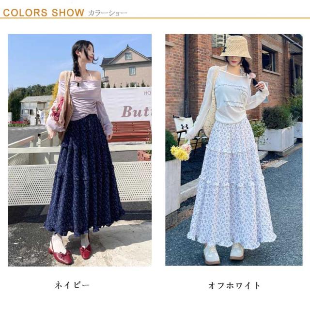 | ・花柄ティアードスカート ・ふんわりデザインが女性らしさをプラスしてくれます。 ・カジュアルになりすぎない小さめのフラワープリントでどんなトップスにも相性抜群。 | |