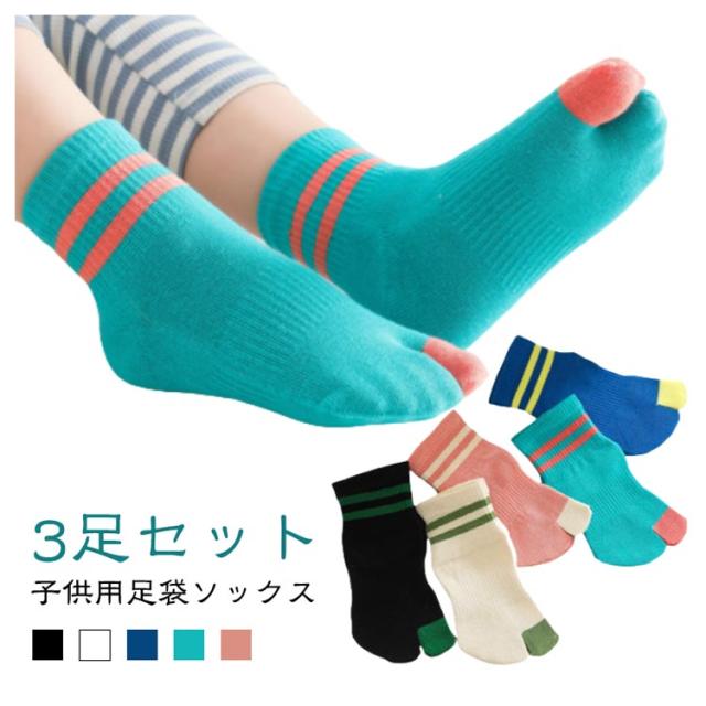 【3足セット】キッズ くつした 足袋ソックス くつ下 くるぶし コットン 子供用靴下 2本指靴下 女の子 クルー丈 スポーツ ジュニア 綿 こども 小学生 二本指ソックス 【3足セット】キッズ シンプル かわいい 通園 通学 運動会 幼稚園 小学校