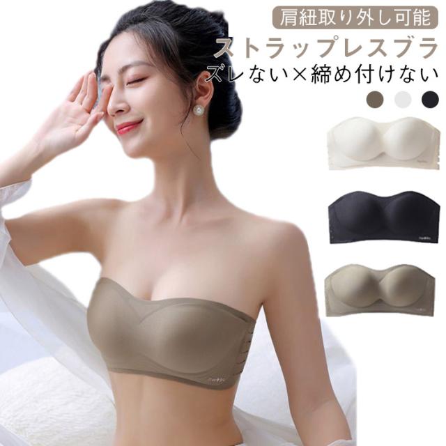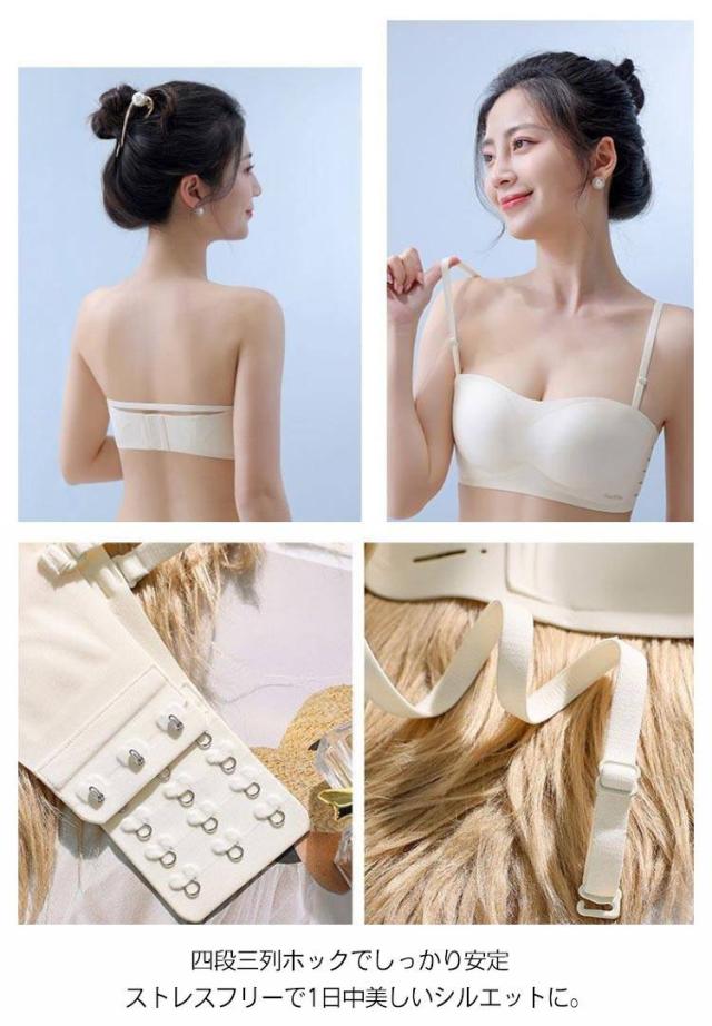 レディース チューブトップ 落ちない ストラップレスブラ ブラジャー ベアトップ ノンワイヤー 谷間 シームレス ずれない 盛りブラ ドレスインナー オフショル 2way 四段三列ホック おしゃれ