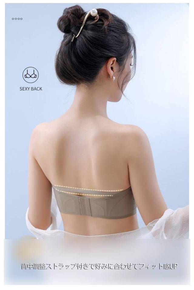 | ズレない×締め付けない ストラップレスブラ 肩紐取り外し可能 通気性の良い柔らかカップ×ノンワイヤー設計 360度防滑シリコンでズレにくく、1日中安心 固定構造+立体設計で小胸さんも自然にボリュームアップ 背中調整ストラップ付きで好みに合わせてフィット感UP シーンに合わせて2WAY着用 オフショルダー/キャミワンピにぴったり 重ね着や透け防止インナーにも◎ シームレス仕様で肌あたりやさしく目立ちにくい 四段三列ホックでしっかり安定 ストレスフリーで1日中美しいシルエットに。 | |