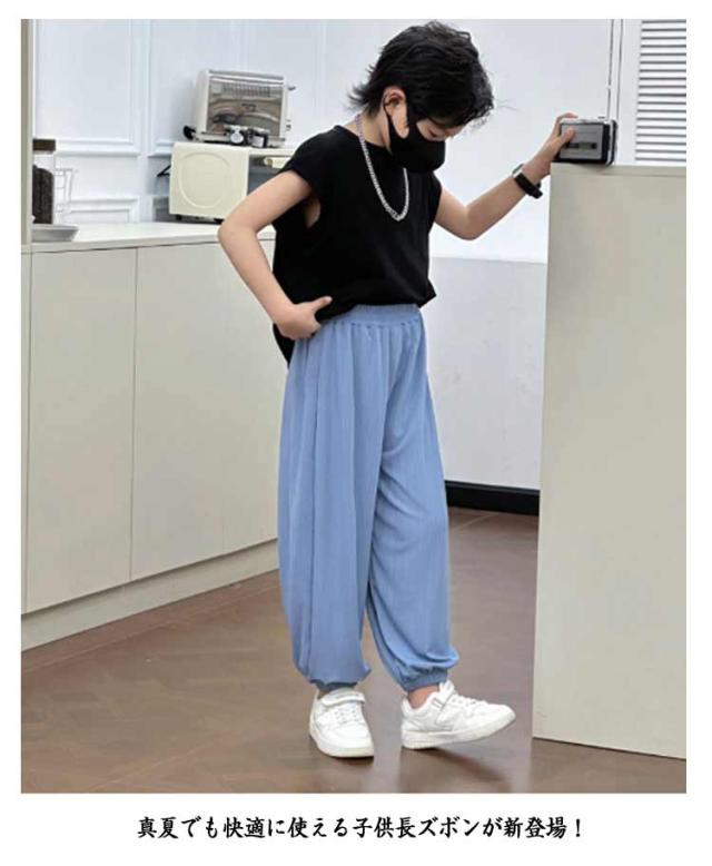 | 真夏でも快適に使える子供長ズボンが新登場! 生地に接触冷感効果あり、通気性が良くて夏に涼しく履けます。 薄手ロングパンツなので、冷房対策、日焼け対策や虫刺され予防などにもぴったりです。 肌に優しい天然素材を使用して、柔らかくて履き心地がとてもいいです。 広い幅のウエストはお腹に優しくて、着心地は非常に快適です。 足裾にゴム付きのデザインで蚊の侵入が防がられ、子供の幼い肌をより良く守れます。 豊富なカラーバリエーションのため日替りで履いてオシャレを楽しめるのも魅力です。 | |