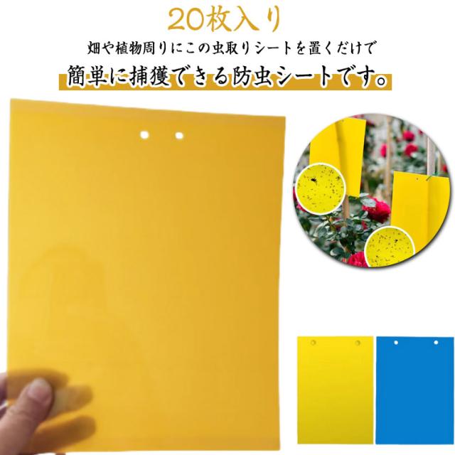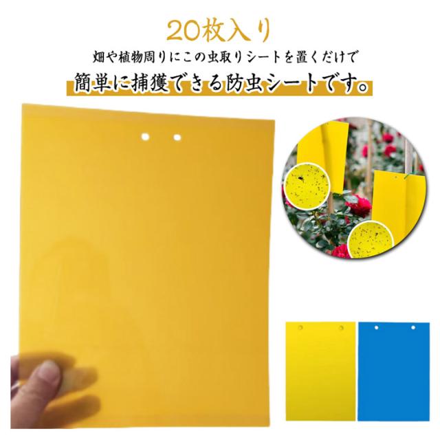 20枚入り 虫捕り粘着シート 粘着シート 昆虫トラップ 強力粘着 虫取り アブラムシ 両面用 害虫対策 キャッチャー 捕虫シート ハエ 昆虫スティッキー ミバエ 蚊捕獲 屋内外対応 ガーデニング 農園 栽培 家庭菜園