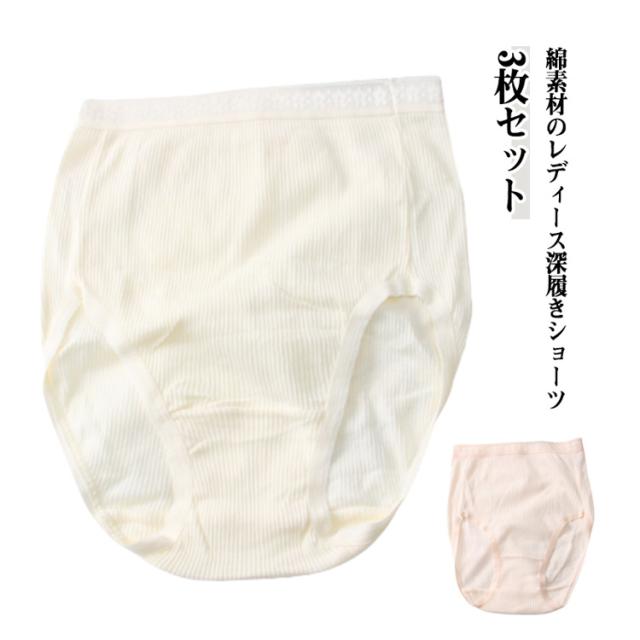 下着 セット 深型 深履き インナー ショーツ ハイウェスト 綿 コットン 3枚セット レディース 深め すっぽり