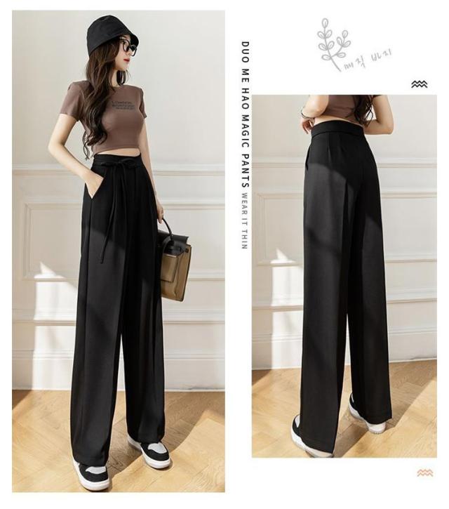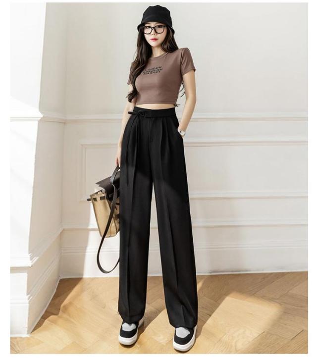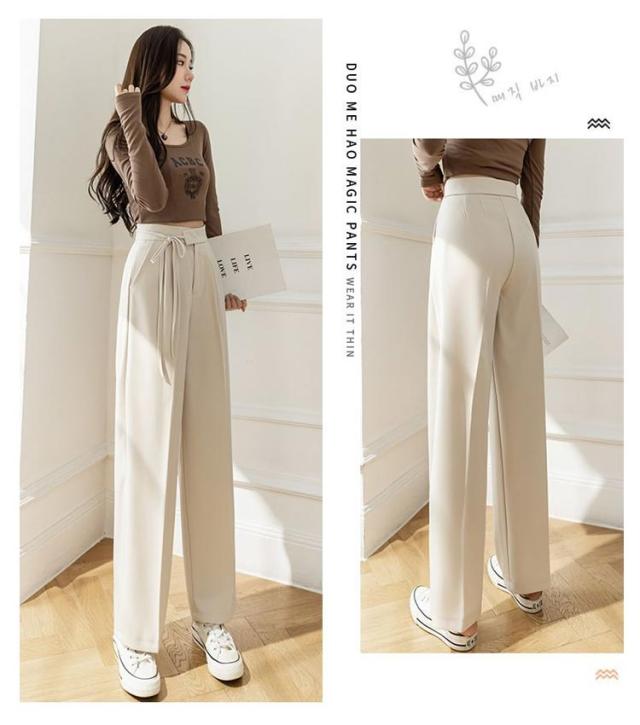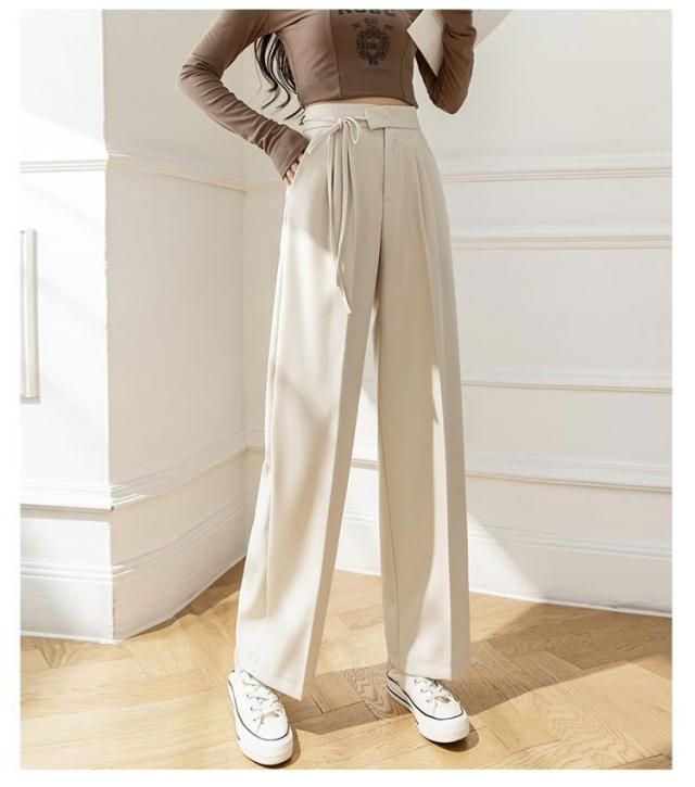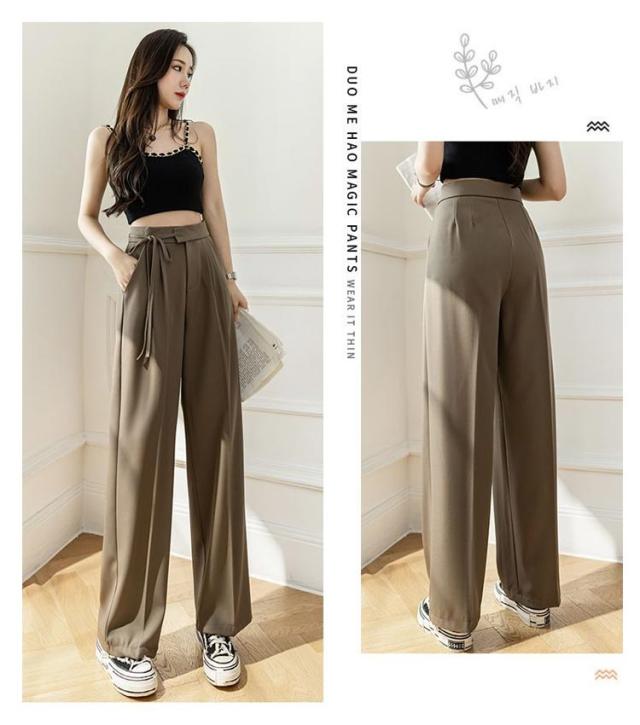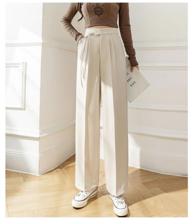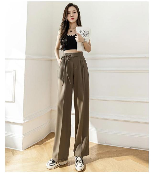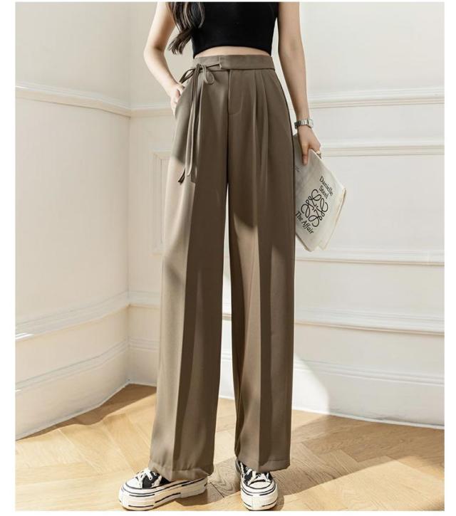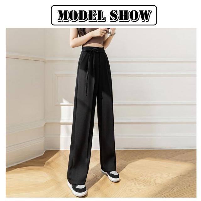 美脚 ウエストリボン タック入り ストレートパンツ スラックス ワイドパンツ ハイウエスト ロングパンツ レディース ワイド パンツ セミワイド 女性 脚長 ボトムス ハイウエストパンツ ズボン 長ズボン ハイウエスト スリム