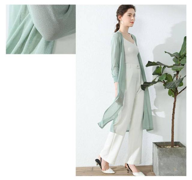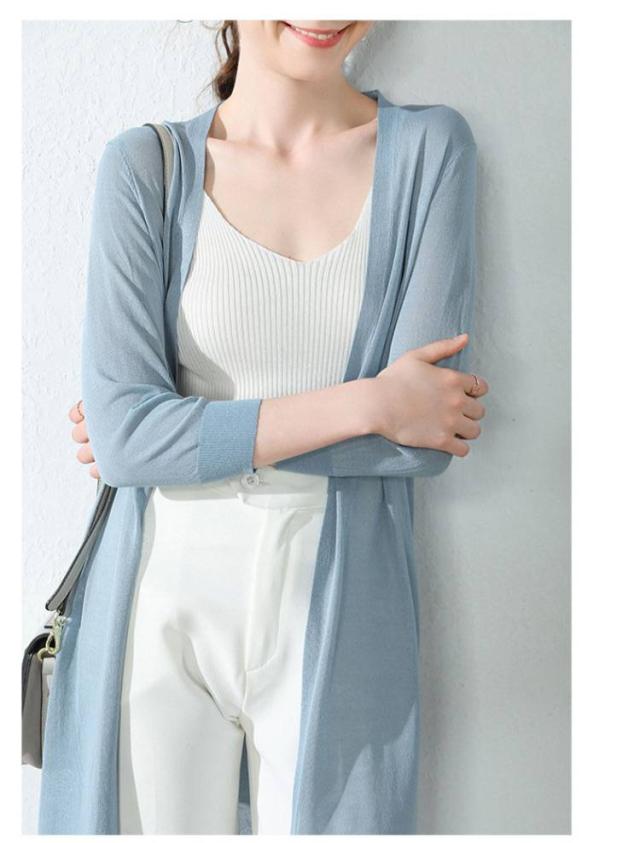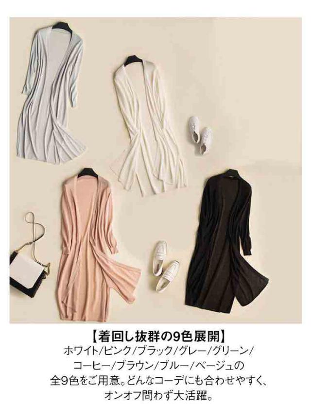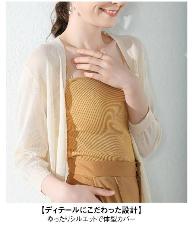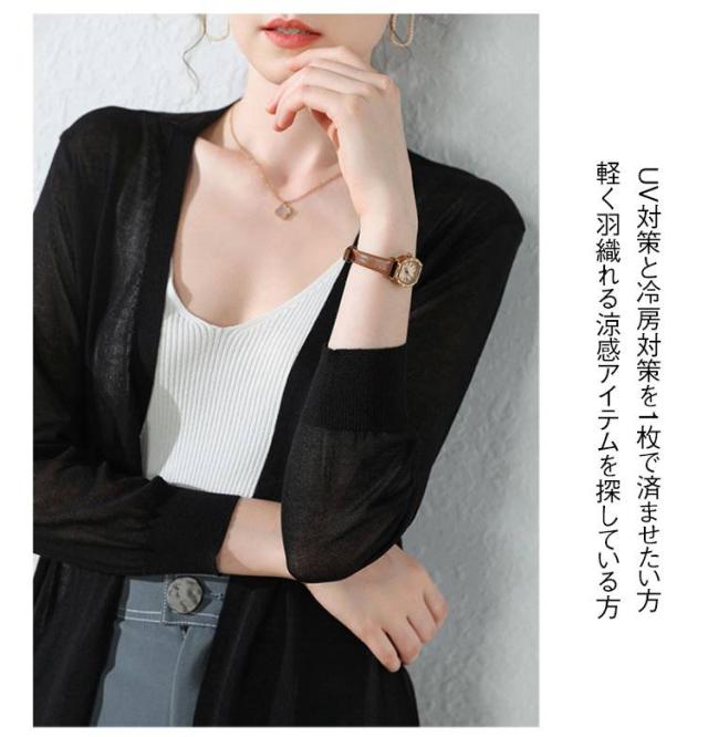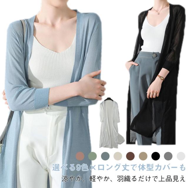 サマーカーディガン ロング丈カーディガン 冷房対策 羽織り UVカット アイスシルク カーディガン 女性 薄手ニット 通勤 体型カバー 日焼け防止 大きいサイズ きれいめ レディースカーディガン 旅行