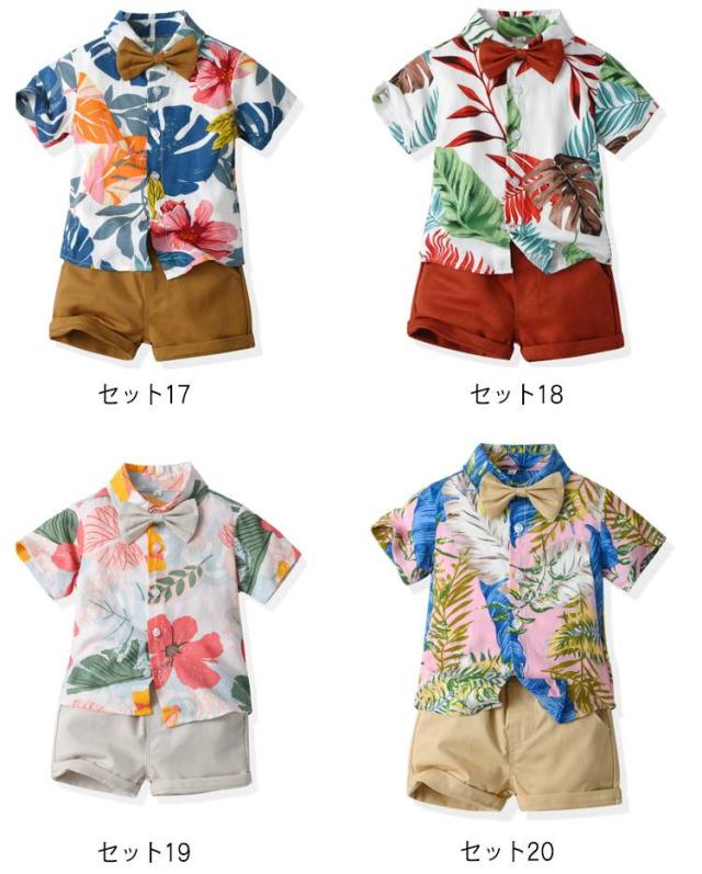 ショートパンツ 男児 アロハシャツ 男の子 こども服 ビーチウエア 上下セット アロハ セットアップ 花柄シャツ 子供服 半袖 2点セット ベビー服 夏用 おしゃれ 可愛い 80 90 100 110 120 130 140