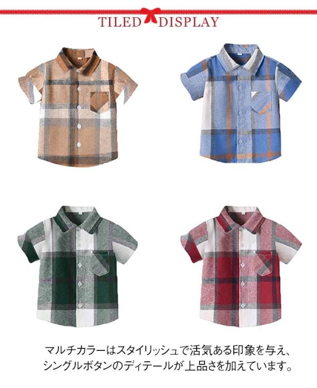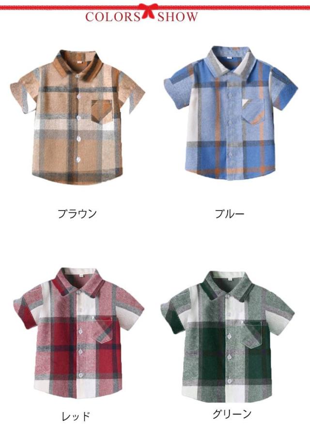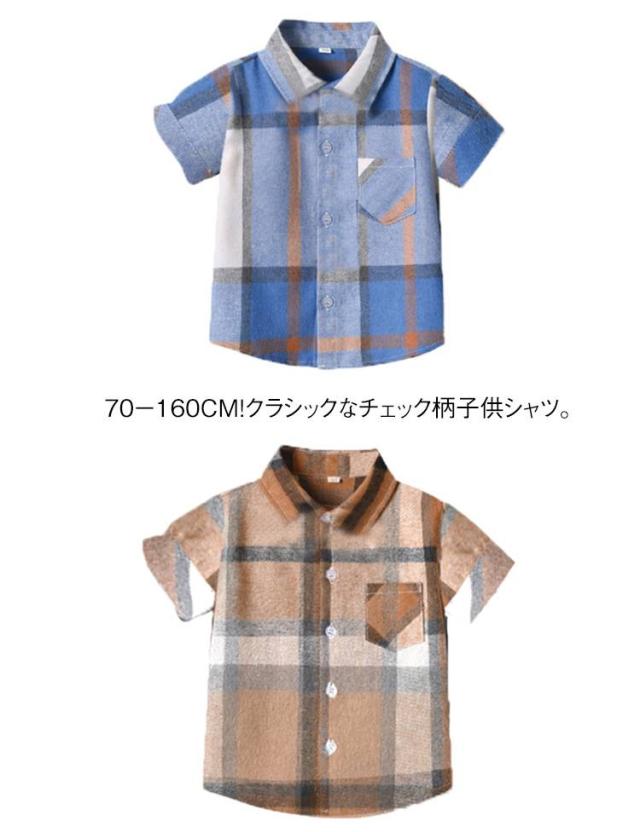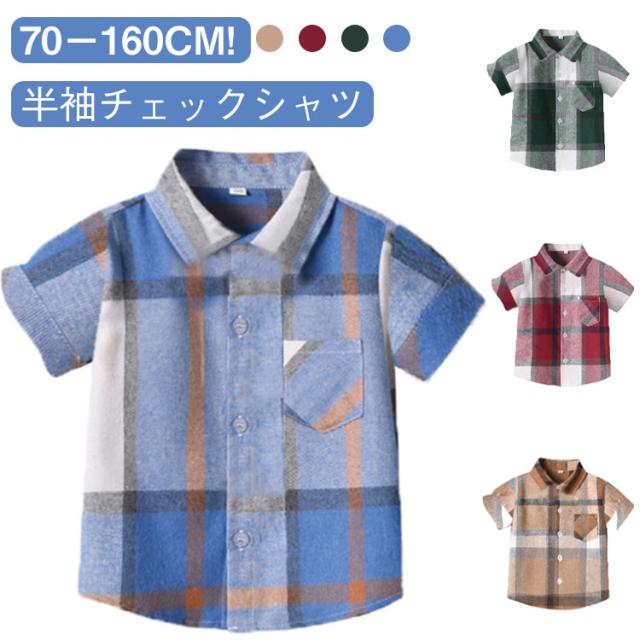 キッズシャツ 夏 男の子 子供服 通学 80 サマーシャツ 半袖シャツ 70 トップス 通園 チェック柄 キッズシャツ シャツ 90 100 110 120 130 140 150 160