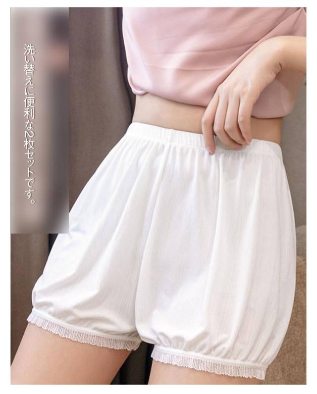 レディース 3分丈 ペチコート ペチパンツ 通気性 透け防止 可愛い 2枚セット!かぼちゃパンツ チラ見え防止 静電気防止 ショートパンツ 2枚セット!かぼちゃパンツ 夏 ボトムス 薄手 部屋着 大きサイズ
