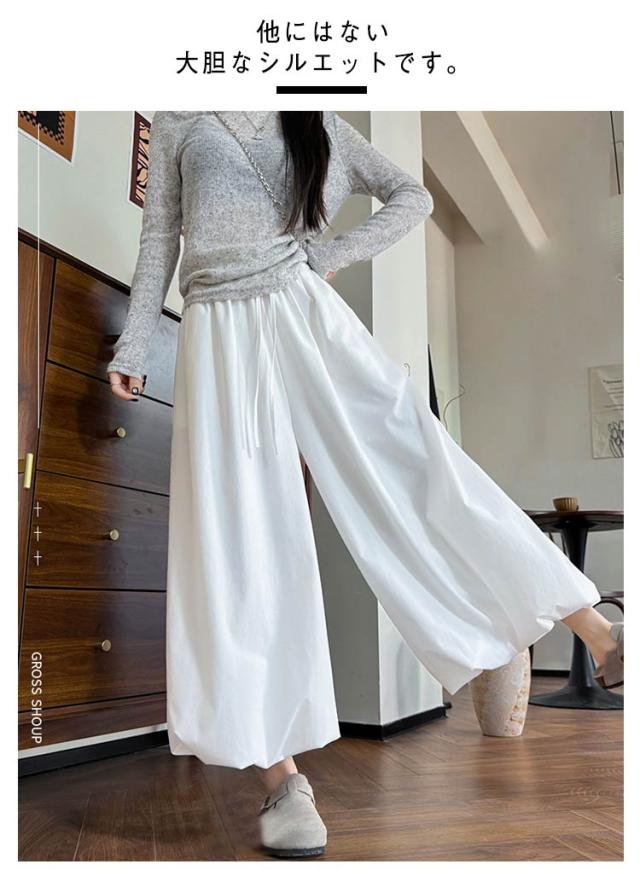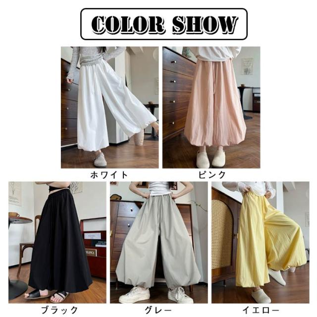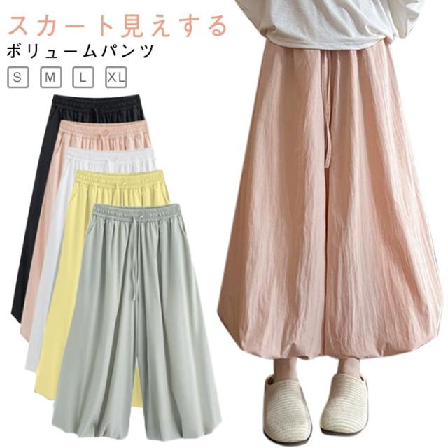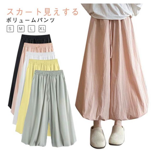 ガウチョパンツ スカーチョ たっぷり タック入り スカーチョ ワイドパンツ 春 9分丈 アンクル丈 ボリューム 低身長 夏 ジョガーパンツ サルエルパンツ ワイド ハイウエスト ゆったり 体型カバー フレアスカート 薄手
