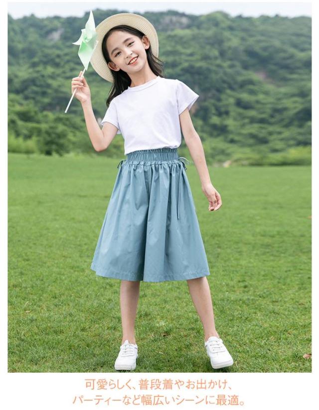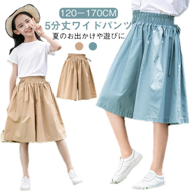 女の子 ガールズ 子供服 パンツ ワイド ワイドパンツ ハーフパンツ ワイドパンツ 夏用 ゆったり ガウチョパンツ おしゃれ 美脚 薄手 ジュニア 120 130 140 150 160 170