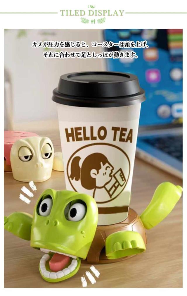 | 亀のコースター:この楽しいカメのコースターの上にカップを置き、マジックが起こるのを見ましょう。 カメが圧力を感じると、コースターは頭を上げ、それに合わせて足としっぽが動きます。 カメの目と口はびっくりして大きく開き、あなたのカメは、「おっと、誰に押されてるんだ、重いぞ!」と言っているようです。 あなたの仕事に楽しみをもたらしてくれるでしょう。 ユニークなデザイン: 高度な3D印刷技術で作られており、変形や色あせがしにくく、耐久性に優れています。 幅広い用途: コーヒーマグカップ、ティーカップ、ビアマグなど、このコースター おしゃれ、リビングルームやオフィスなど、どこにでも置くことができます。 完璧な贈り物: この面白いカメのコースターは、お友達やご家族へのプレゼントに最適です。 誕生日、クリスマス、お祝いなど、様々なシーンに最適です。 | |