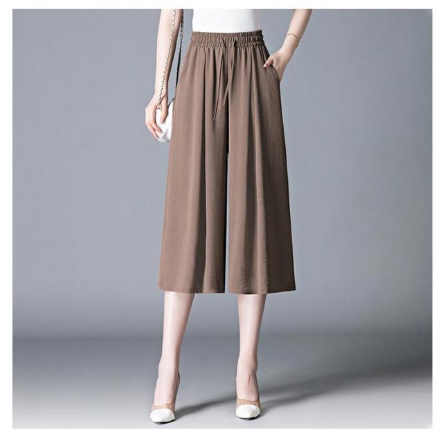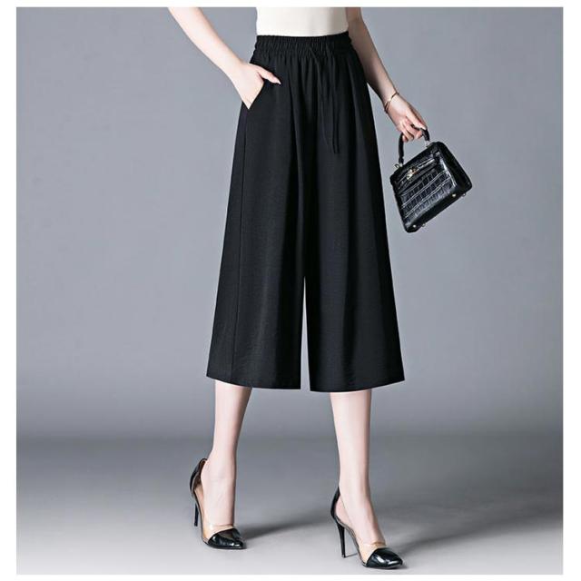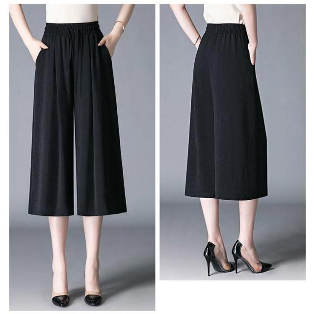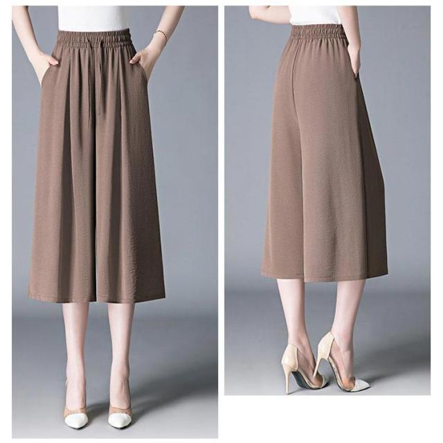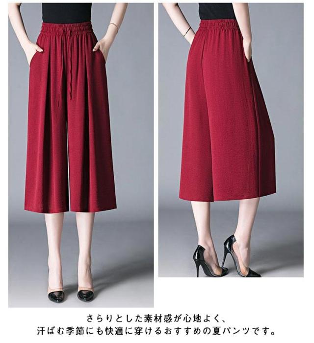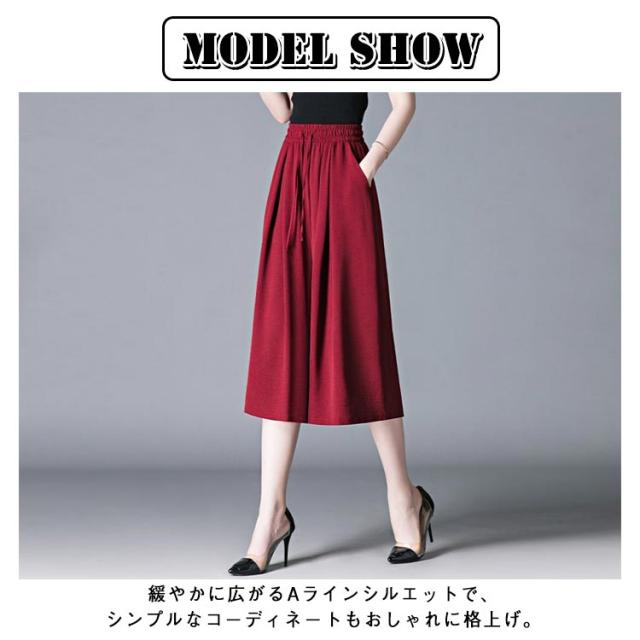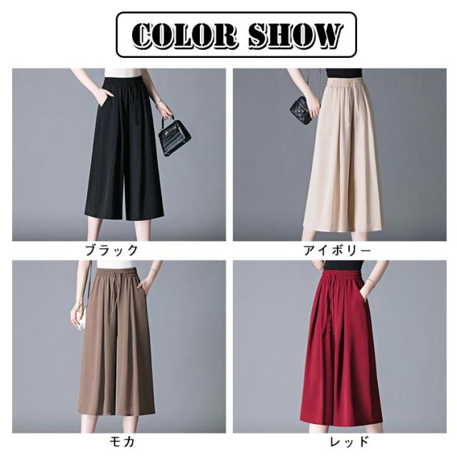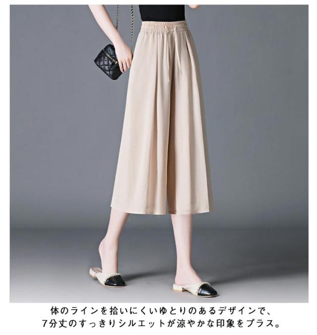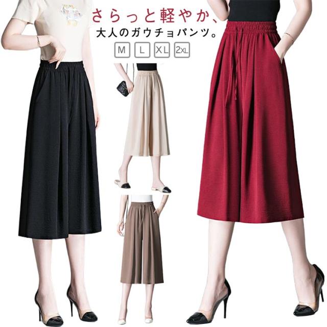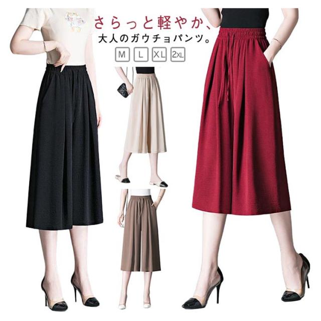 ガウチョパンツ 7分丈 スカーチョ 春夏 接触冷感 ガウチョパンツ レディース 黒 低身長 フレアパンツ ハイウエスト プリーツ キュロット スカンツ 涼しい きれいめ ウエストゴム ポケット付き ゆったり 体型カバー 無地