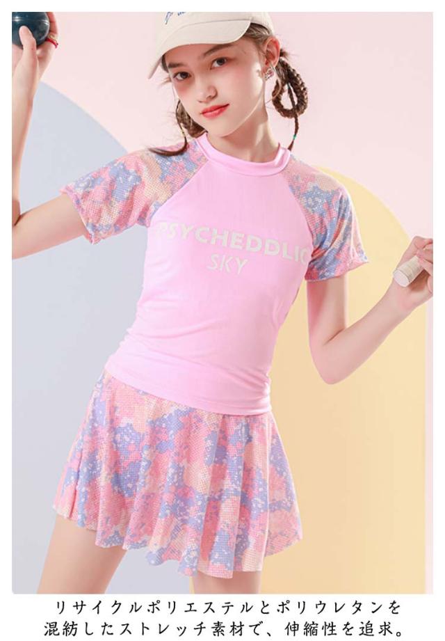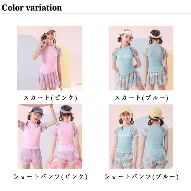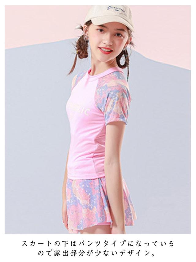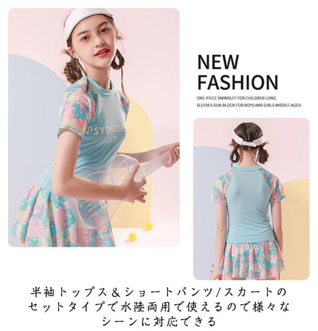 水着 120cm 子供 中学生 女の子 女子 トップス 2点セット UVカット 半袖 ショートパンツ 140cm 女児 110cm スカート 130cm 150cm ジュニア 小学校 子供 キッズ スクール水着 キッズ水着 スイムウェア スイミング 水泳 ラッシュガード かわいい 露出控えめ