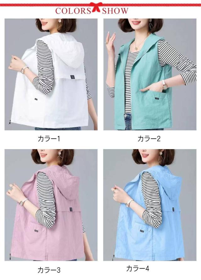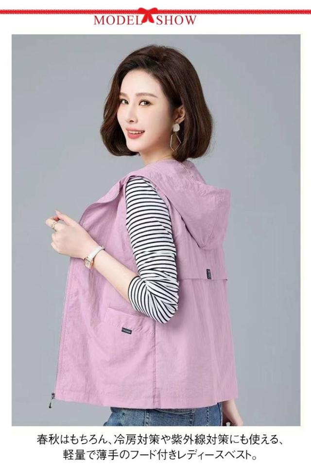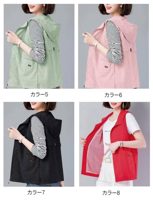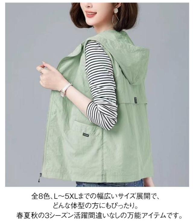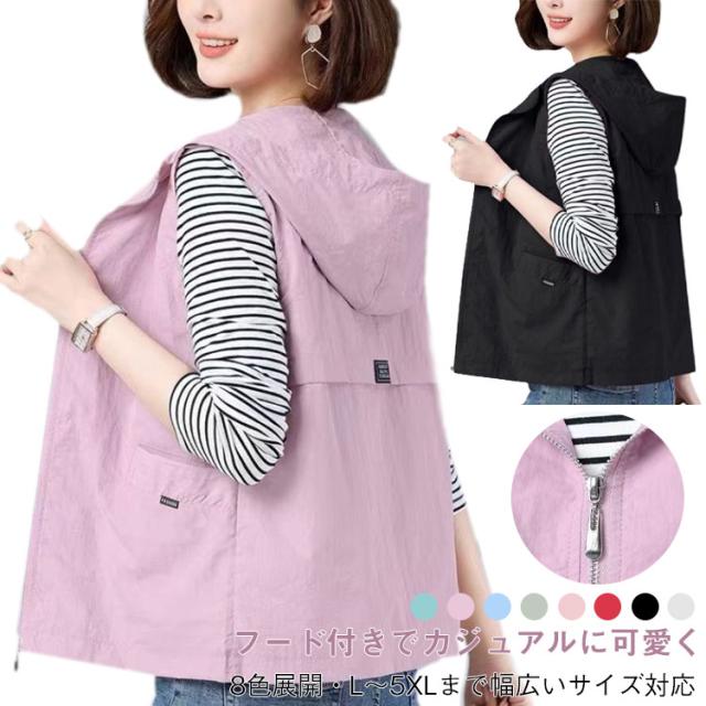 レディースベスト レディースベスト アウター 大きいサイズ 春秋 夏 ゆったり ジップアップ おしゃれ ノースリーブ 羽織り フード付き パーカー カジュアル 8色展開 L−5XL