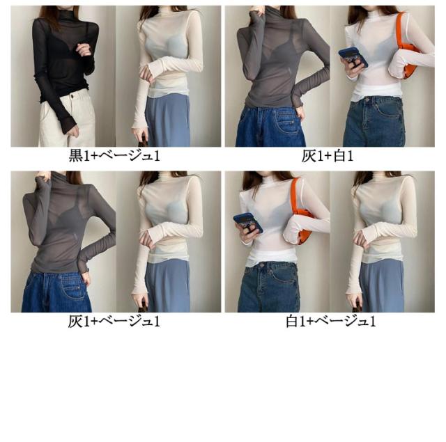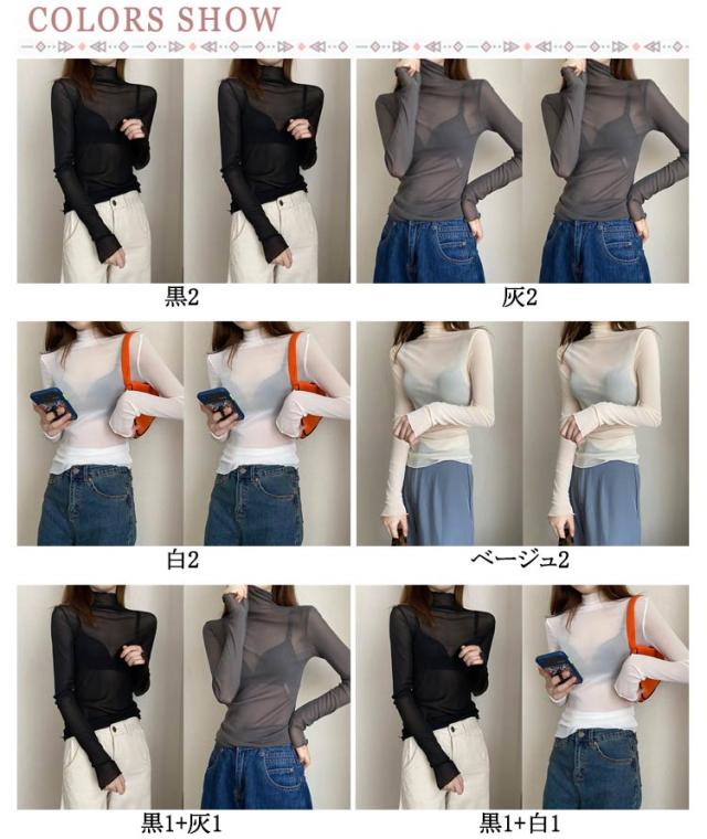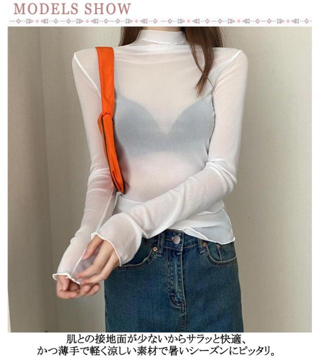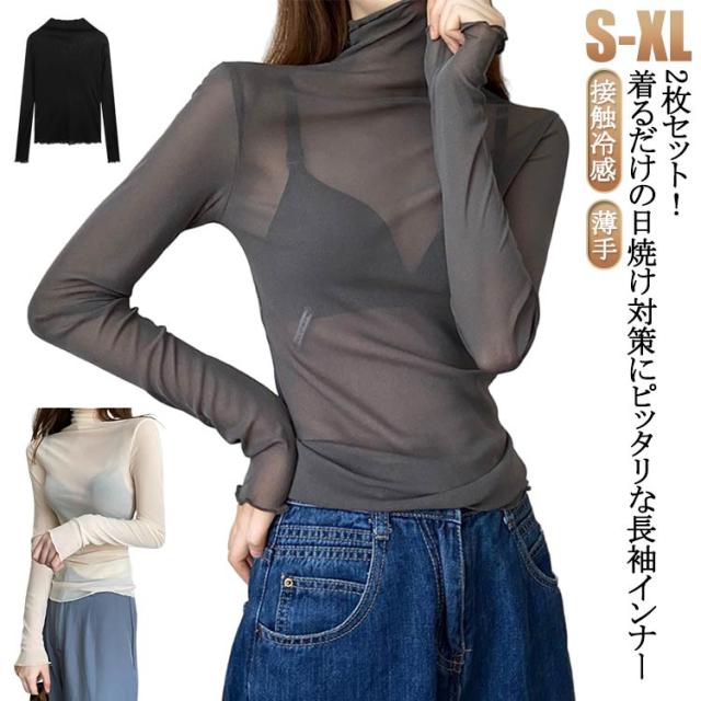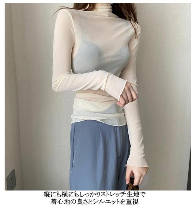 長袖 ボトルネック 薄手 シアー 紫外線対策 UV対策 シアートップス シアートップス レディース トップス ハイネック 接触冷感 クール冷感 シースルー UVカット トップス レイヤード インナー セクシー 肌見せ きれいめ ミセス 20代 30代 40代 50代 送料無料 大きいサイズ