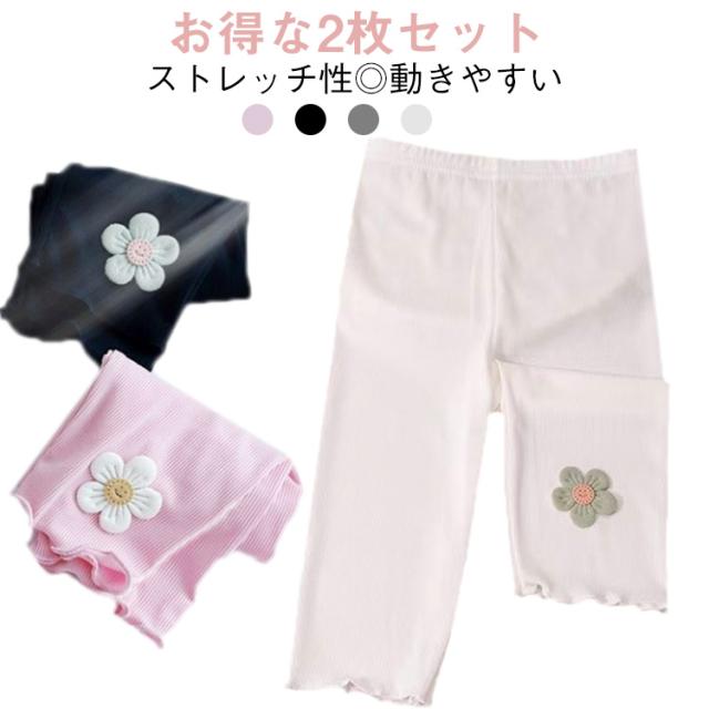 七分丈 夏用 レギンス レギンスパンツ キッズ 女の子 キッズ 薄手 薄手 高伸縮 2枚組 90−140cm