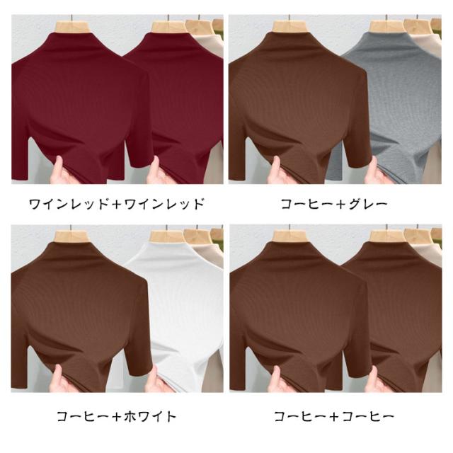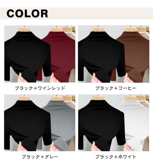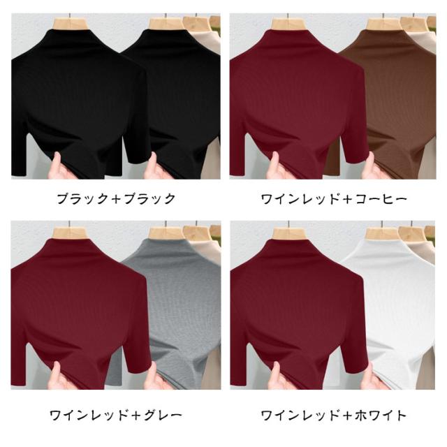 5分袖 伸縮性 タートルネック カットソー tシャツ レディース おしゃれ 半袖tシャツ 五分袖 Tシャツ インナー 2枚セット 春夏 ハイネックtシャツ 日焼け対策 2枚セット 大きいサイズ 無地 トップス リブ 春 夏 秋 シンプル カジュアル 大きいサイズ