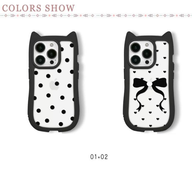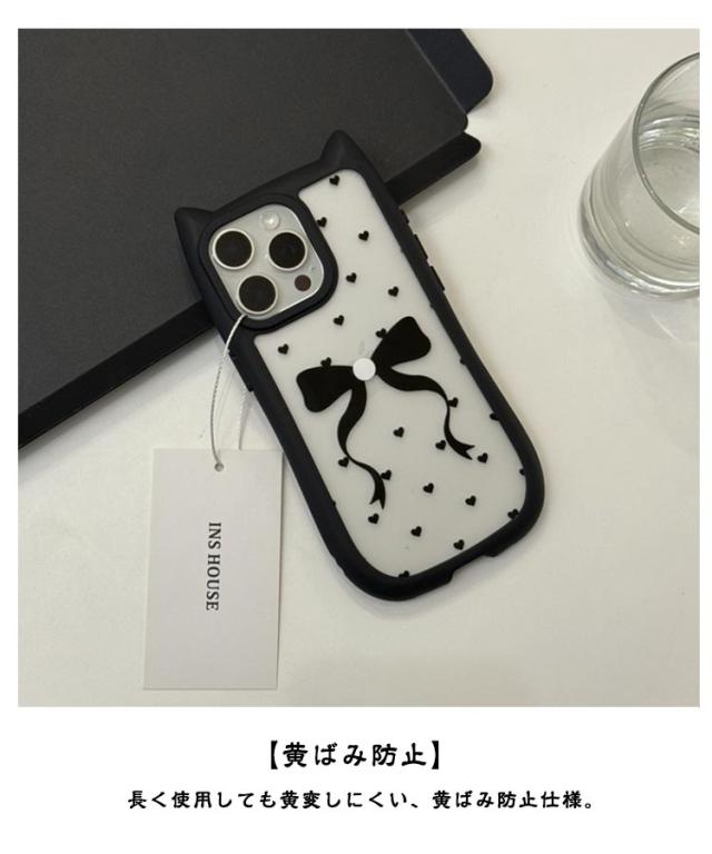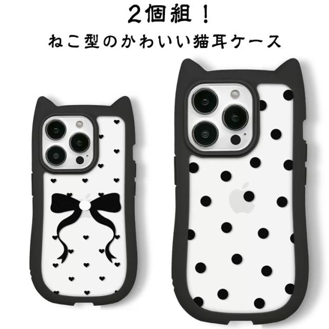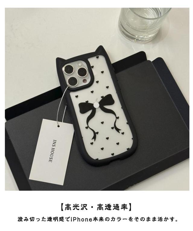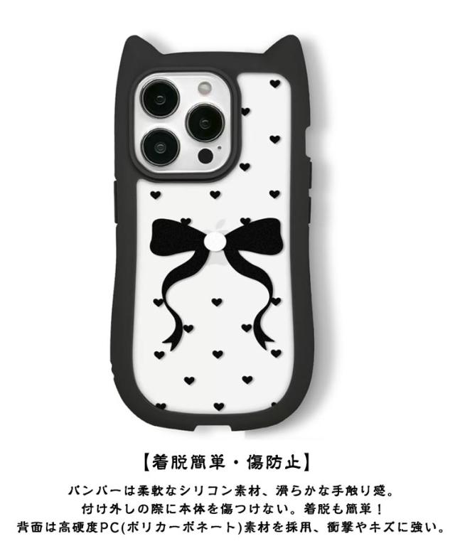 ミミ 背面透明タイプ iphone11ケース 13Pro 15 背面透明タイプ 13ケース iphone iPhone12ケース 猫耳 背面ケース 15ケース Pro iphone アイフォン 14ケース ねこ みみ ネコ 12Pro アイフォン 13 落下防止 携帯ケース max リボン ドット ハート すり傷防止