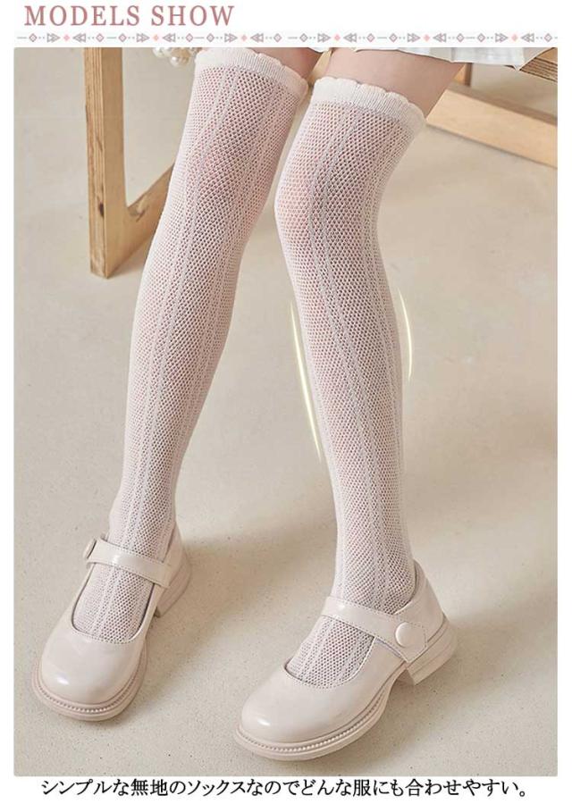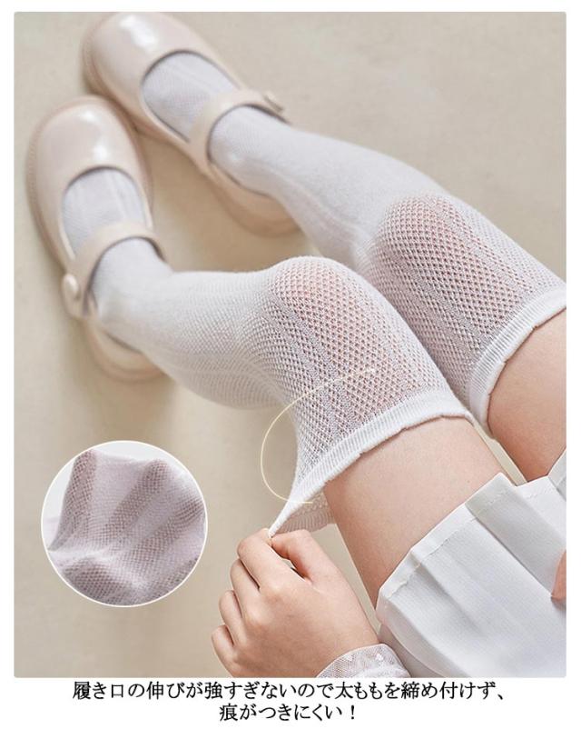 キッズ 靴下 ハイソックス メッシュハイソックス 薄手 靴下 ニーハイソックス 可愛い 膝上ハイソックス 夏 涼しい 女の子 ソックス 蒸れない ジュニア 夏 フリル