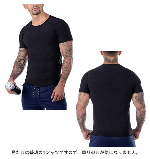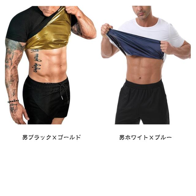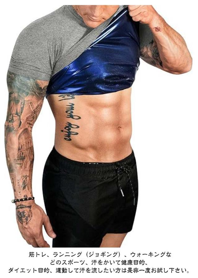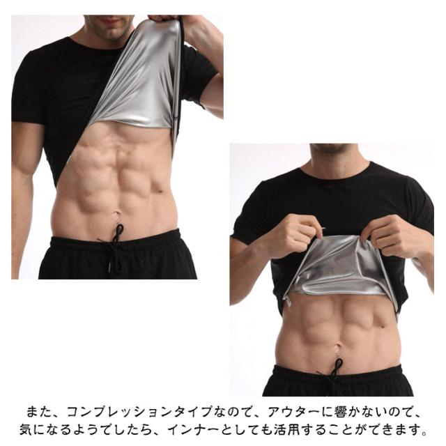 | 運動時にこちらのサウナTシャツを着るだけで、ポリマー素材の保温効果で少し動くだけで発汗が促されます。 軽い運動でも、サウナ効果で滝汗を実現。 見た目は普通のTシャツですので、周りの目が気になりません。 また、コンプレッションタイプなので、アウターに響かないので、気になるようでしたら、インナーとしても活用することができます。 インナーとして使えば、普段と同じことをしているだけで、発汗が期待できます。 筋トレ、ランニング(ジョギング)、ウォーキングなどのスポーツ、汗をかいて健康目的、ダイエット目的、運動して汗を流したい方は是非一度お試し下さい。 | |