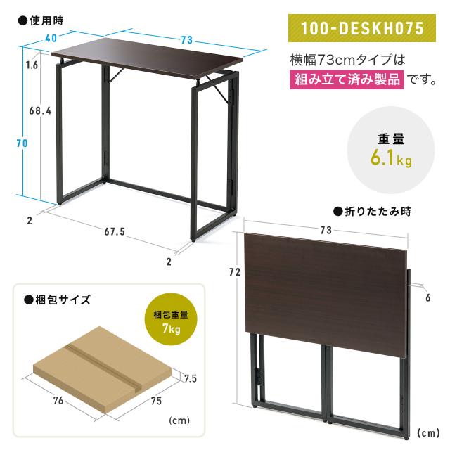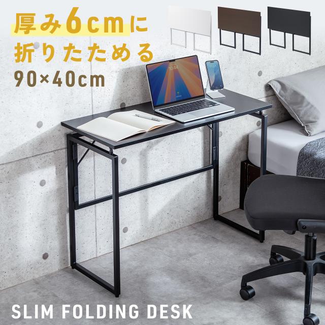 折りたたみデスク 折りたたみテーブル コンパクトデスク 省スペース リビング学習 幅90cm 奥行40cm ブラック ブラウン ホワイト[100-DESKH081]