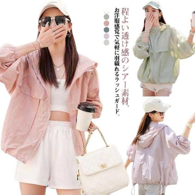 uv パーカー 薄手 レディース シアー ラッシュガード ショート丈 パーカー マウンテンパーカー 羽織 長袖 UVカット ライトアウター トップス