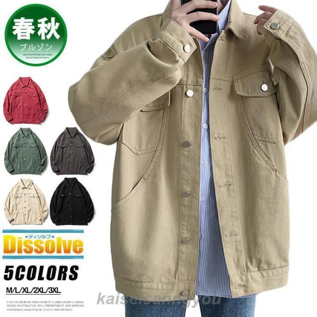 デニムジャケット メンズ 無地 薄手 カバーオール シャツジャケット デニム ジージャン ワークジャケット 秋 春 アウター ジャンバー ゆったり かっこ