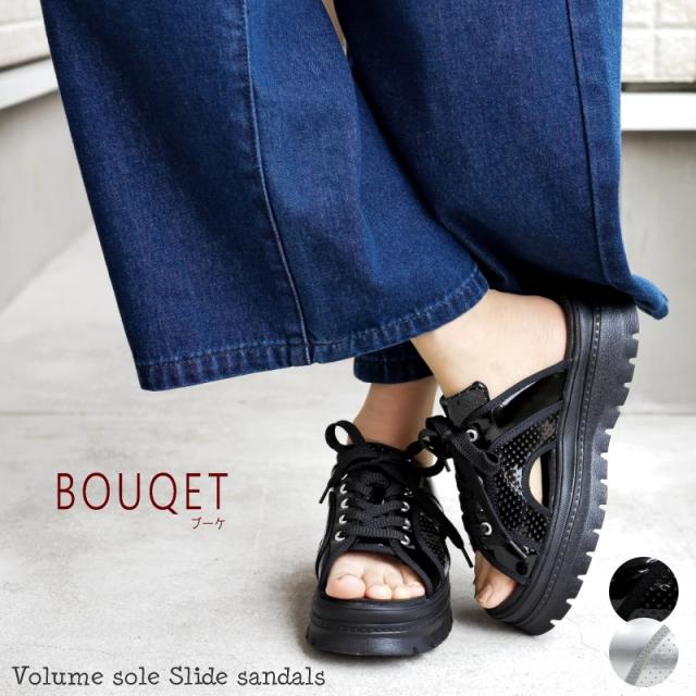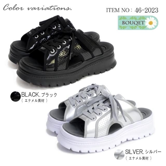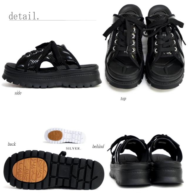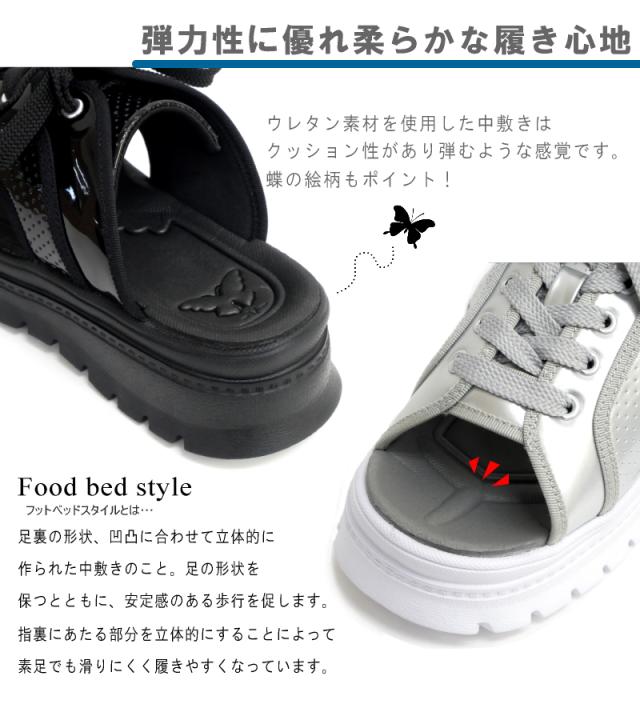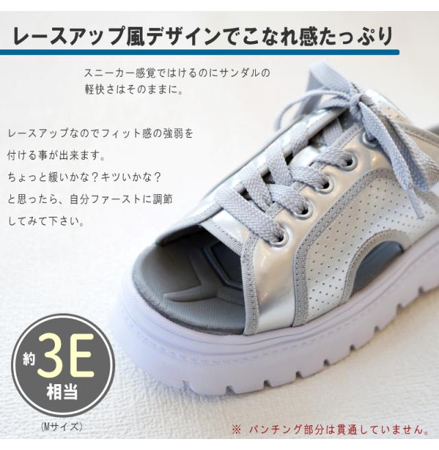 スポーツサンダル レディース ミュール 厚底 ボリューム プラットフォーム 軽量 蝶 レースアップ パンチング エナメル 履きやすい スタイルアップ 夏 リゾート 旅行 韓国 原宿 3e