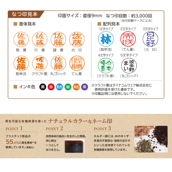 ●[印面サイズ]直径9mm [書体]8種類 [インキ色]6色