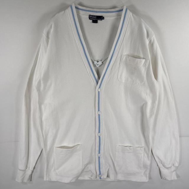 古着 ポロバイラルフローレン Polo by Ralph Lauren カーディガン コットンニット シャンブレ Vネック スナップボタン M ホワイト