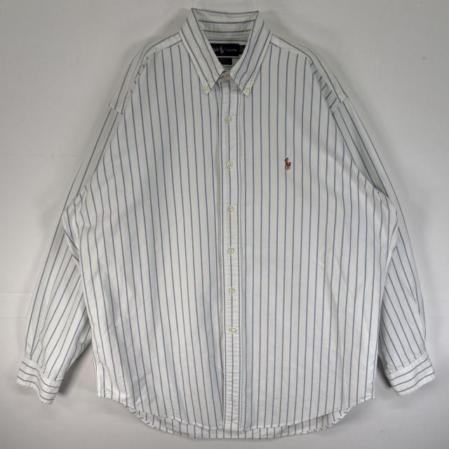 古着 ラルフローレン RALPH LAUREN 長袖シャツ オックスフォード ボタンダウン ロゴ 刺繍 肉厚 BLAKE L ホワイト ストライプ メンズ