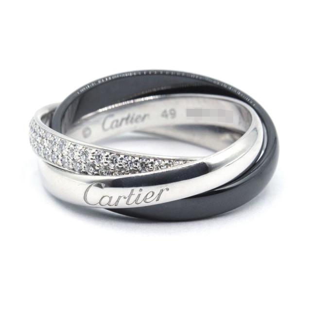 カルティエ トリニティリング セラミック スモールモデル #49 実測10号 K18WG ダイヤ B4095449 ホワイトゴールド 地金約4g 中古 送料無料