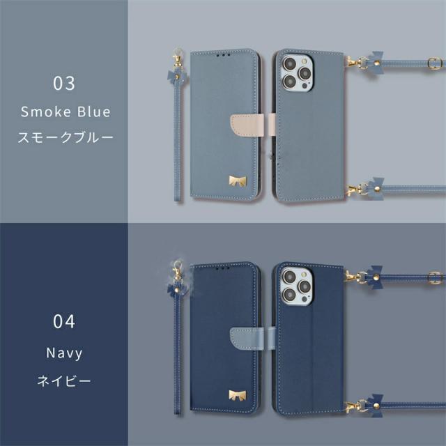 スマホショルダー ICカード収納 斜め掛け 首掛け iPhone16e iPhone SE 第3世代 リボン iPhone17 16 iPhone15 Pro iPhone14 iPhone13 iPhone12 ケース 手帳型 携帯ケース かわいい 可愛い アイフォン 11pro max XS MAX XR XS 7PLUS/8PLUS ショルダー タイプ 淡色