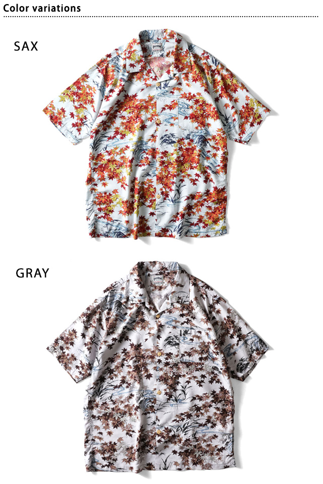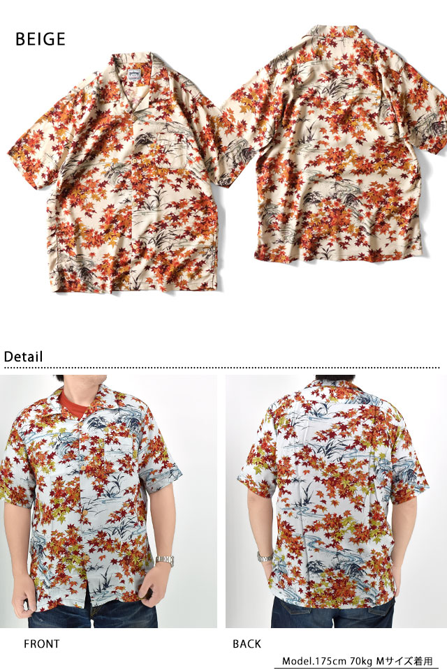 | 日本製レーヨンアロハシャツ「紅葉」◆HOUSTON HOU-M01131 | |||||||||||||||||||||||||