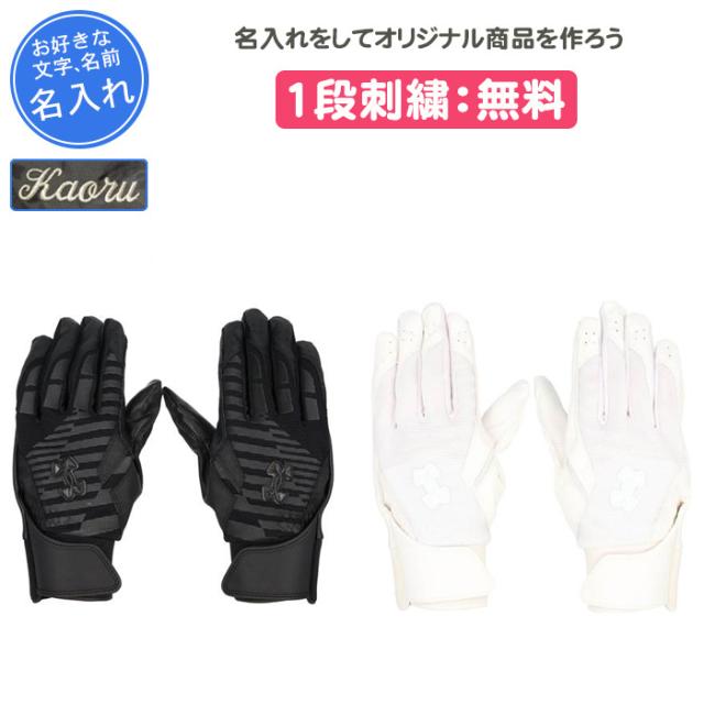 ※刺繍を行うと試合で使用できないことがございますので、何卒ご理解のほどお願いいたします。 刺繍加工をしてオリジナル商品をつくちゃおー♪ 卒団、記念品、プレゼントにおすすめです!! 両手刺繍:無料となります。 ※名入れの文字数:平成楷書/4文字まで、HELVETIKA MEDIAMと筆ケンジ/5文字 ウォッシャブル対応。高校野球対応。シープスキン風合成皮革による素手感覚のフィット感。従来より太くしたリストがより高いホールド感を提供。立体成型:手の構造に沿ったカッティングが、グリップ時のフィット感を高める。両手用(ペア売り)。両手用。 素材:合成皮革・ナイロン・ポリエステル・ポリウレタン 生産国:インドネシア カラー:001/ブラック、100/ホワイト
