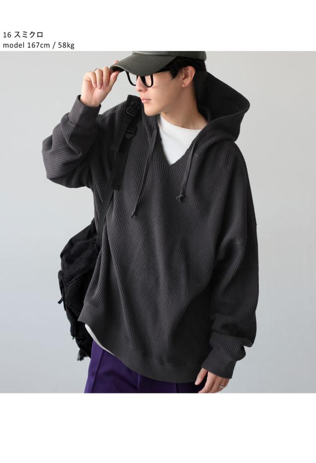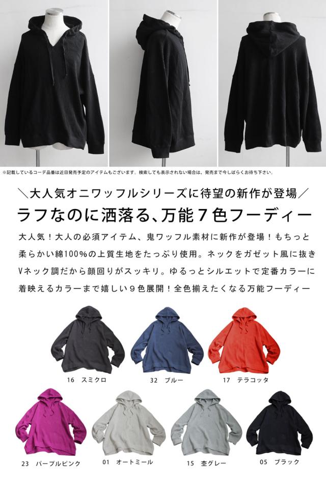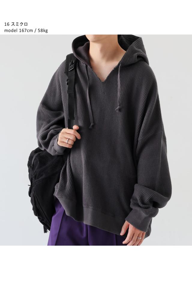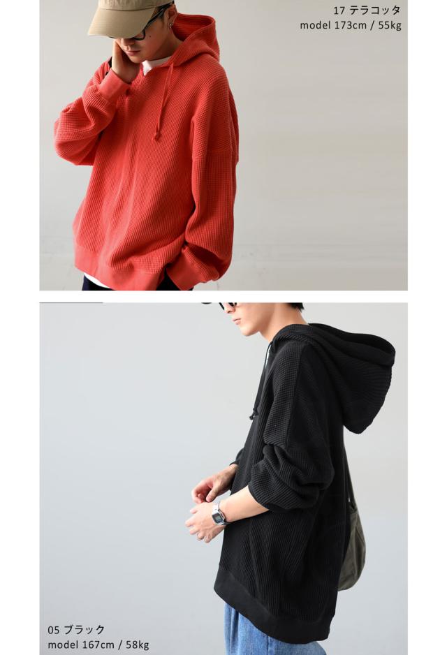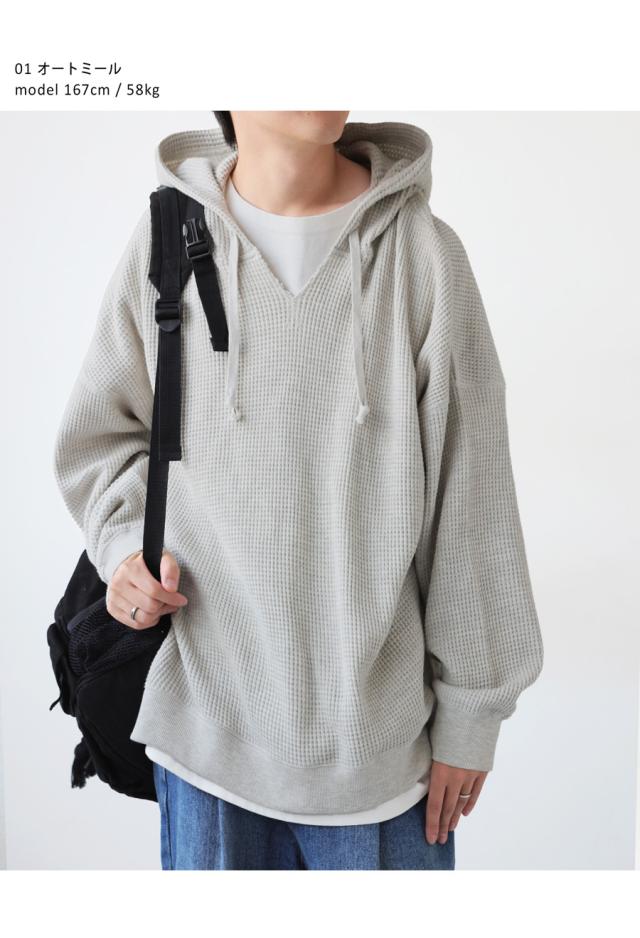 za-00265z プルオーバー トップス パーカー 綿 綿100 ゆったり ユニセックス 無地 大人カジュアル オニワッフル オーバーサイズ 着痩せ 体型カバー 重ね着 カジュアル