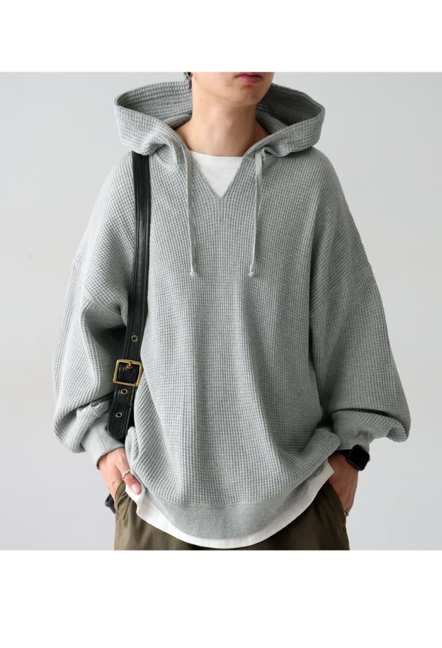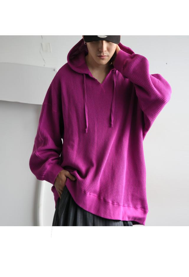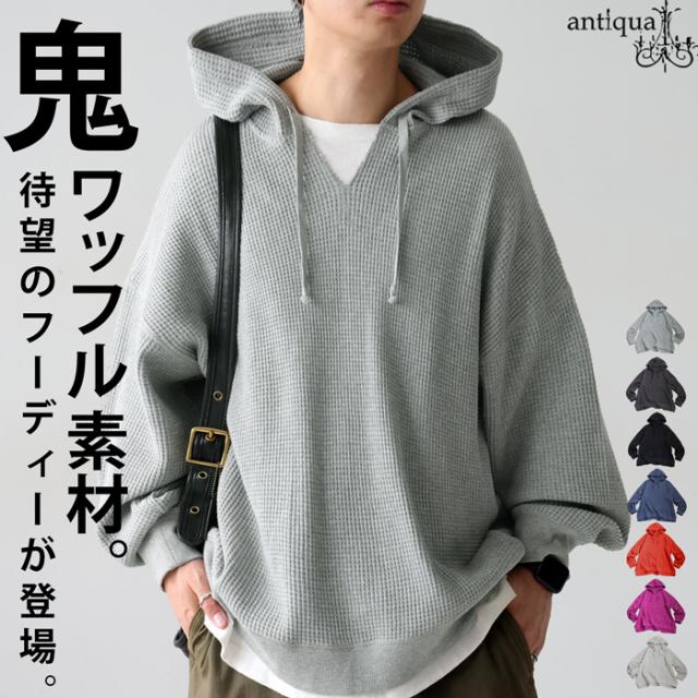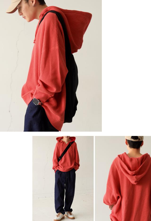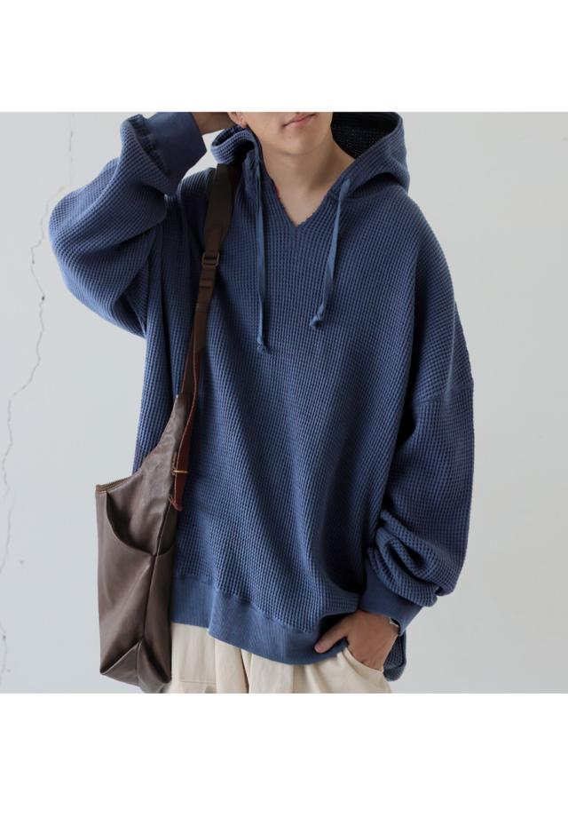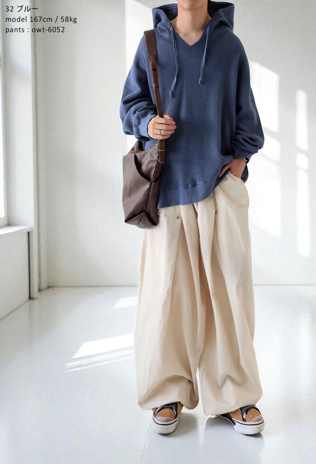 za-00265z プルオーバー トップス パーカー 綿 綿100 ゆったり ユニセックス 無地 大人カジュアル オニワッフル オーバーサイズ 着痩せ 体型カバー 重ね着 カジュアル