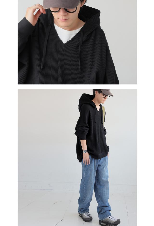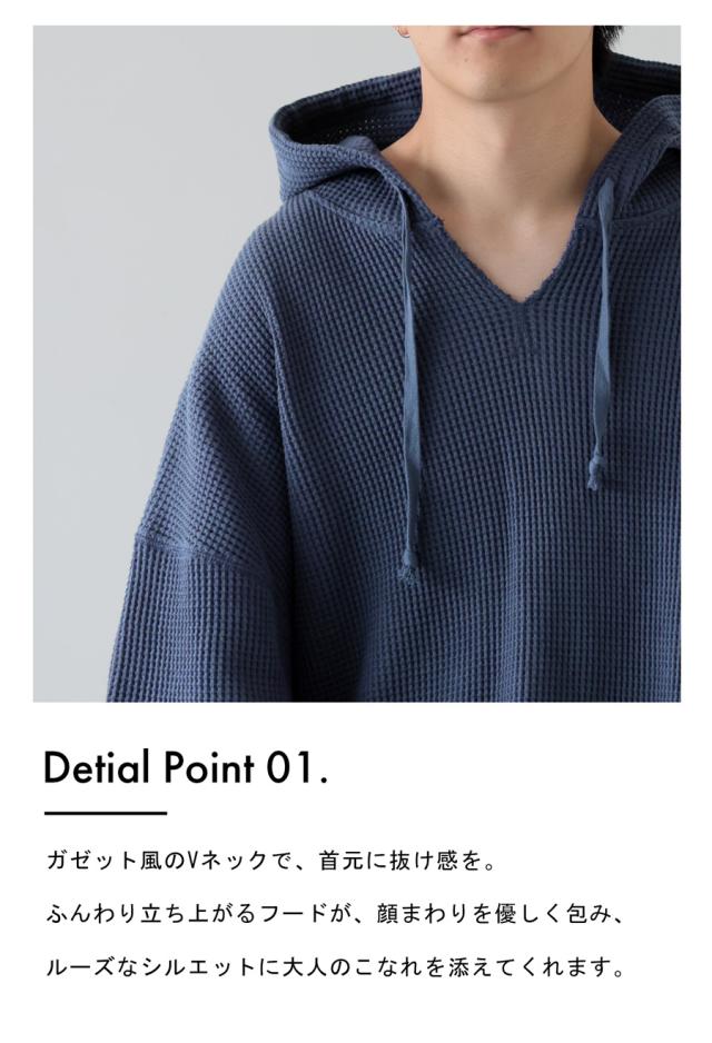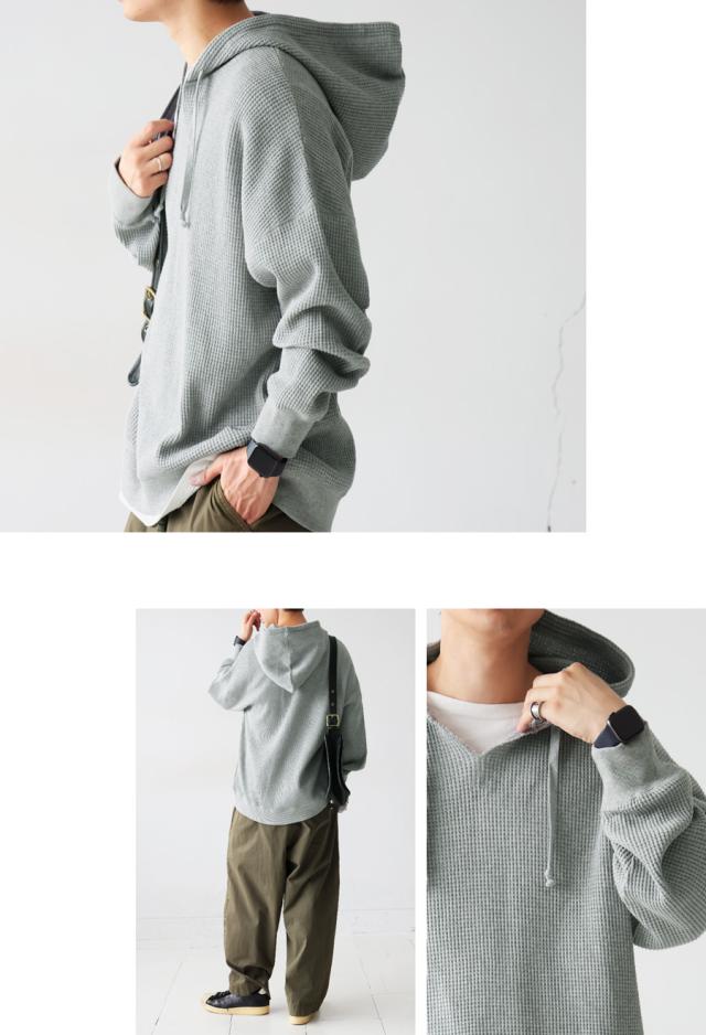 ポイント10%対象!29日20時〜3日10時 ガゼット風ネックフーディー メンズ 鬼ワッフル 長袖 送料無料・再入荷 メール便不可 秋新作