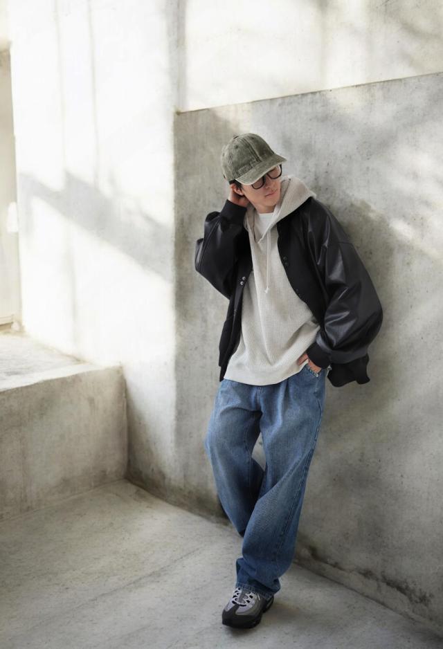 ボトムスはワイドパンツでとことんルーズに、スキニーやデニムでバランスよく引き締めてもOK。レイヤードスタイルにも最適で、ロンTやタートルネックとの重ね着も映える万能な一枚です。