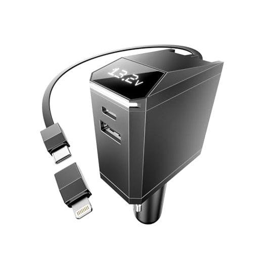 巻き取り式充電ケーブル 車 充電器 シガーソケット 充電器 153W(66W巻取り式 USB-Cケーブル)IPHONE GALAXY ANDROID スマートフォン ノートPC IPAD 各種 その他機器対応