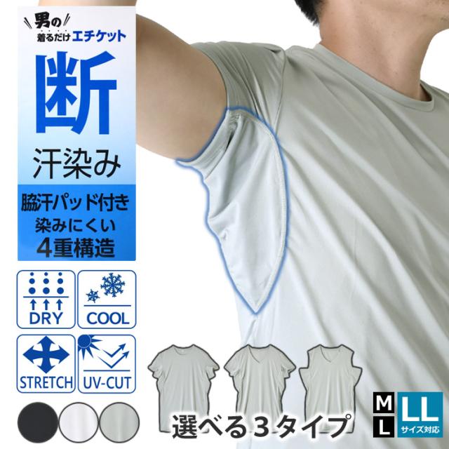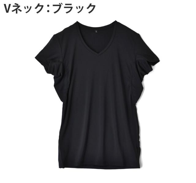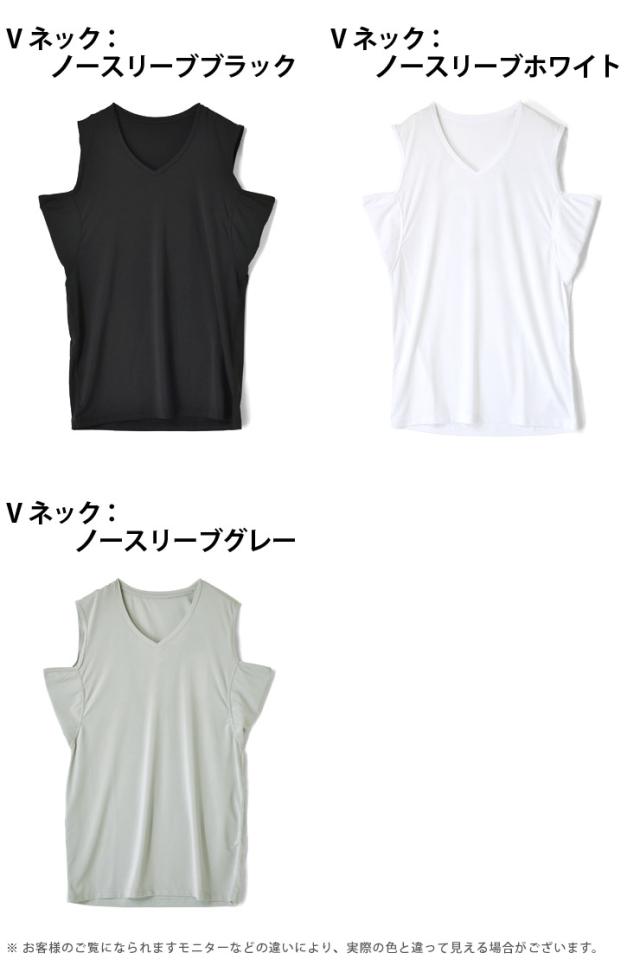 汗染み対策 選べる 丸首&Vネック 接触冷感 エチケット インナー Tシャツ ノースリーブ【C9T】
