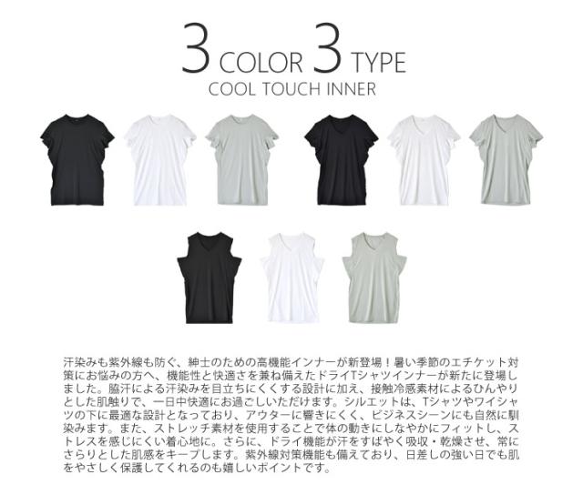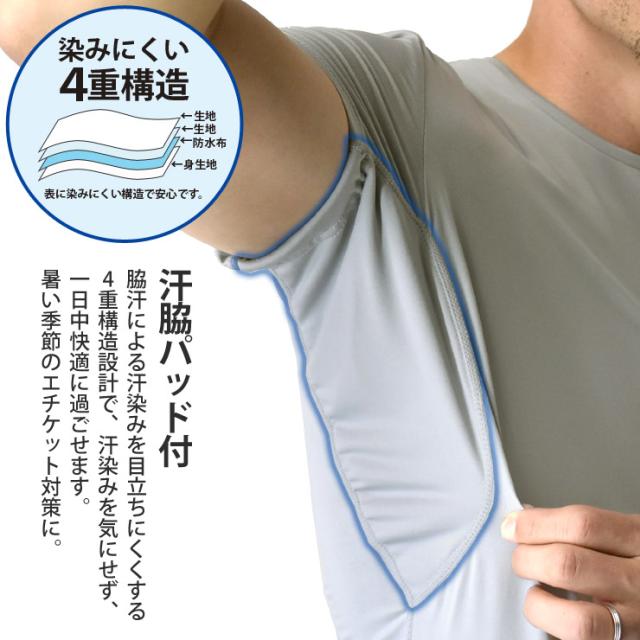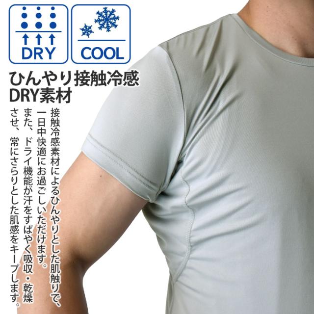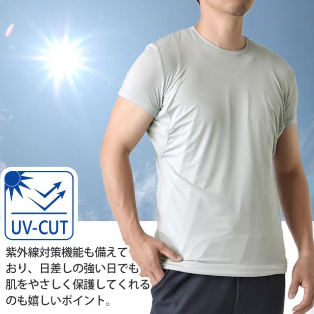 インナー Tシャツ メンズ 紳士 汗染み対策 脇汗 エチケット 下着 肌着 ストレッチ 接触冷感 ドライ 紫外線対策 Yシャツ下 ワイシャツ下【C9T】【送料無料】【メール便1】【mens】