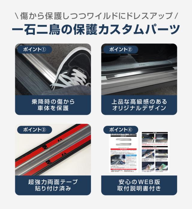 スバル フォレスター専用設計の、運転席・助手席のサイドドア乗降口に装着する保護パーツです。