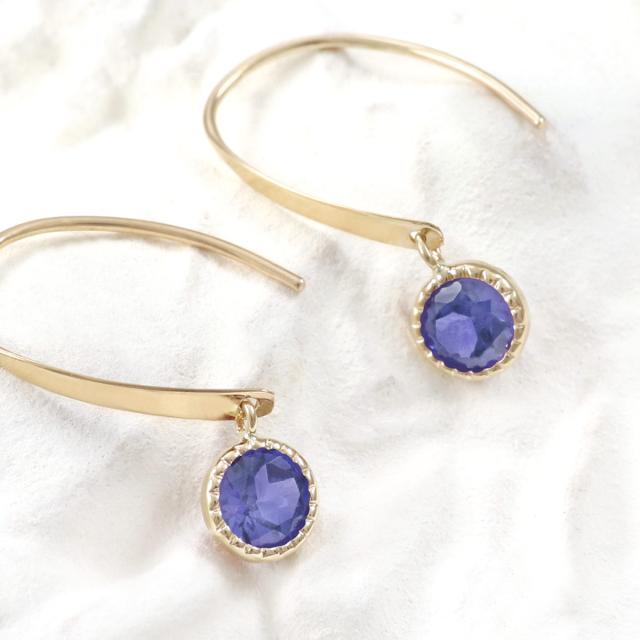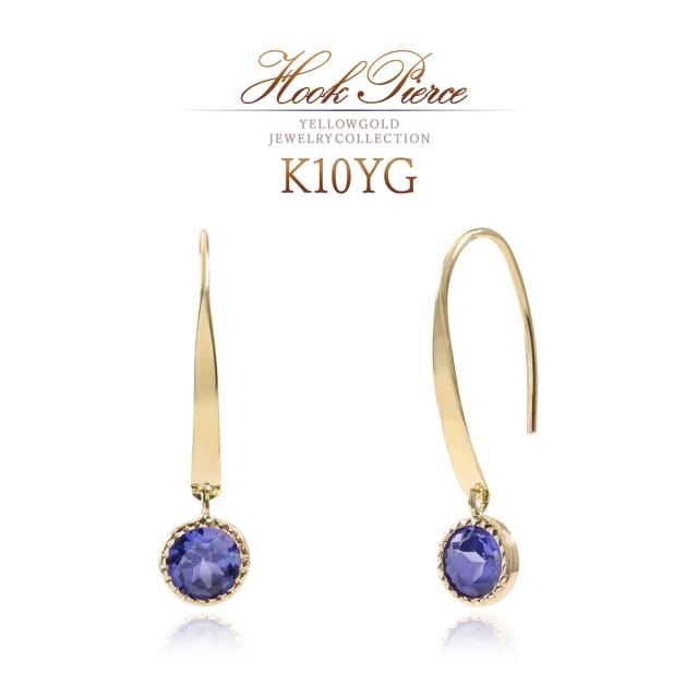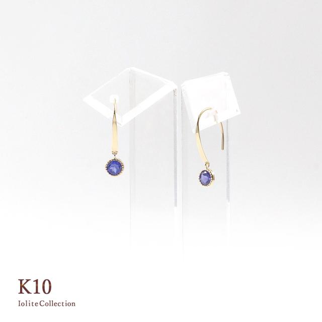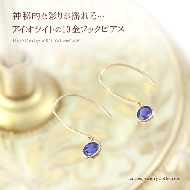 揺れるピアス ゴールド シンプル 小ぶり アイオライト 天然石 フックピアス レディース 10金 アクセサリー 10K K10 プレゼント 結婚記念日 誕生日 お祝い 贈り物 揺れる ピアス 一粒 両耳用 ぶら下がり アイオライトピアス 青紫 K10YG 3月 誕生石 本物 母の日 ギフト 2026