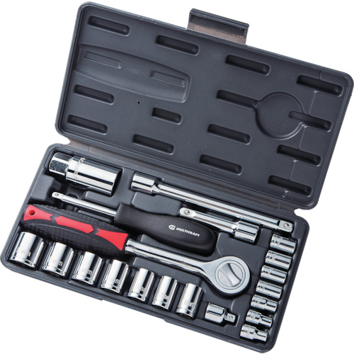 ●セット内容:9.5mm角ラチェットハンドル、6.35mm角スピンナーハンドル、6.35mm角ソケット(4、5、6、7、8、9、10mm)、9.5mm角ソケット(11、12、13、14、15、17、19mm)、9.5mm角エクステンションバー(75mm、150mm)、ソケットアダプター凹9.5mm×凸6.35mm、9.5mm角スパークプラグソケット21mm