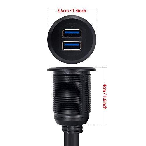 USB3.0 ケーブル 二股 延長 防水ケーブル USBパネルフラッシュマウントケーブル デュアルUSB3.0オスメス延長ケーブル USBマウント ダッシュマウント フラッシュマウント パネルマウントケーブル 車 ボート オートバイ用 1m / 3.3フィート