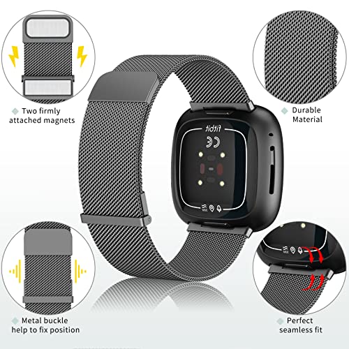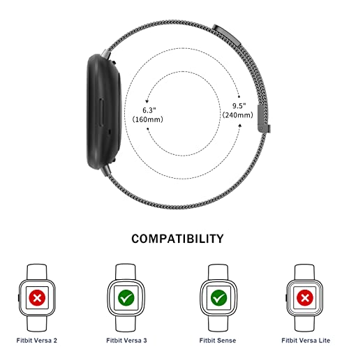 Fitbit Versa3 バンド / Fitbit Sense バンド fitbit versa4 交換ベルト ステンレスマグネットロック付き フィットビット ベルト Versa 3 / Senseに対応